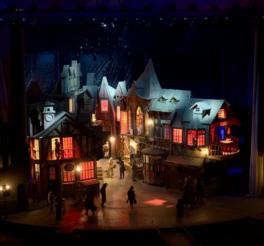 حسین پارسایی پیشتر هم الیور توئیست و نمایشهای دیگری چون بینوایان، رستم و سهراب و … را روی صحنه برده بود اما پیشرفت و پختگی او هر بار بیشتر شده است و این تجربه و پختگی این بار در نمایش الیور توئیست باشگاه انقلاب (پاییز ۱۴۰۴) به اوج خود رسیده است. پرده که بالا رفت دکور چشمها را به خود خیره کرد. با یک دکور و صحنه چندوجهی، پیچیده و جذاب مواجه شدیم. هنوز از تماشای صحنه سیر نشده بودیم که هر چند دقیقه دکور گردان میچرخید و ما با طرف زیبای دیگری از آن روبهرو میشدیم و باز هم چشمانمان خیره میماند. هر طرف دکور با جزئیاتی حسابشده و تودرتو کار شده بود به گونهای که قادر بود به لحاظ فیزیکی نیز گسترش و توسعه یابد. محیط و فضای جدید این اجرا دست سازندگان را باز گذاشته بود تا با صحنهای بزرگ و متحرک نمایش را به لحاظ بصری و زیباییشناسی در جایگاه بسیار مطلوبی قرار دهند.